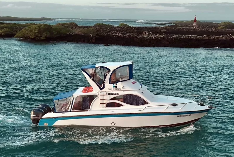 Desayuno y Prepárate para un encuentro con la naturaleza galapagueña: iremos en lancha con guía certificado a la isla de Santa, una bahía prístina con aguas cristalinas para una emocionante aventura de snorkel. Comida y regreso.